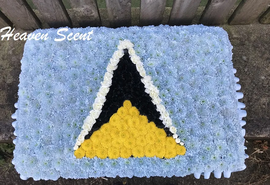 A luscious blue, Black, Yellow & White St Lucian Flag shaped tribute.